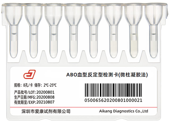 采用微柱凝膠法,8孔卡設(shè)計,適用于ABO血型反定型的檢測
